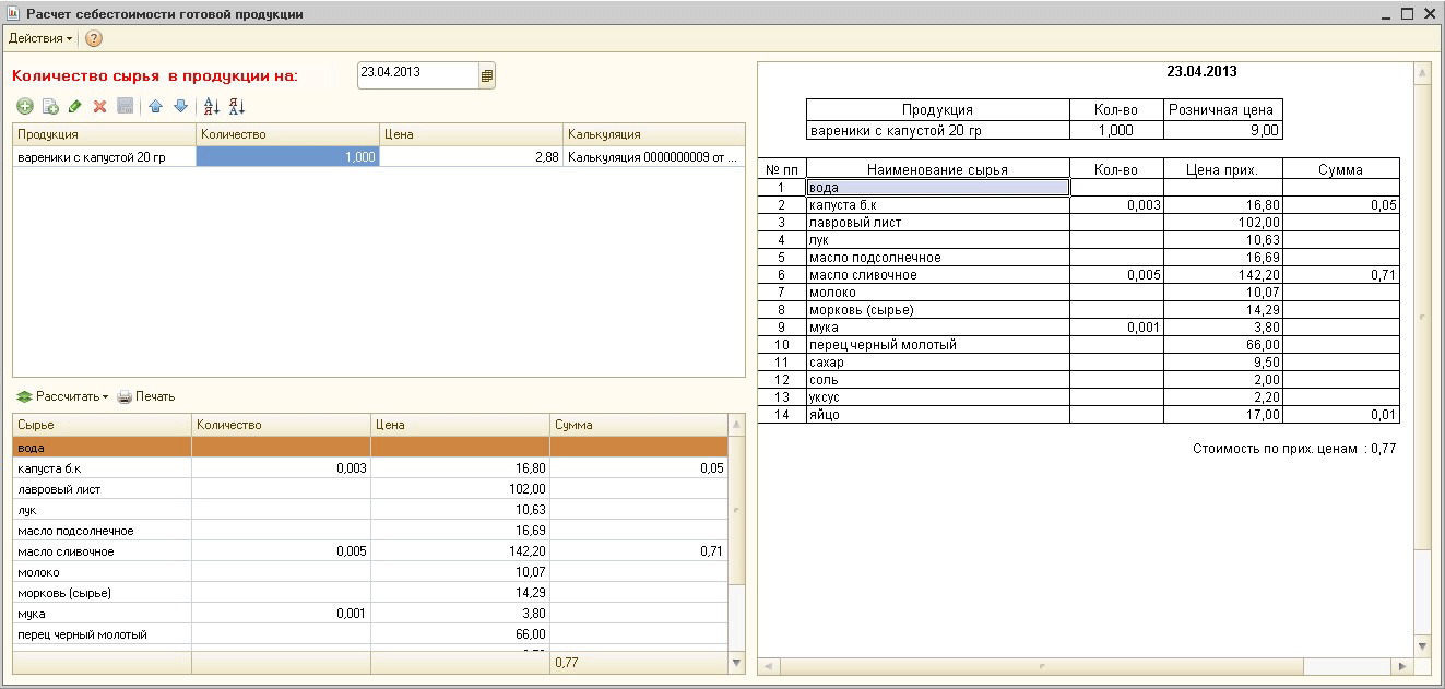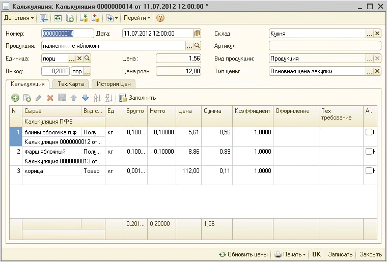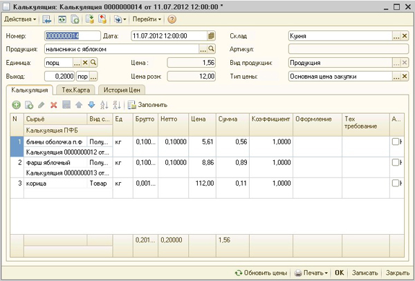 - Формування калькуляцій з урахуванням характеристики продукту і технологічних вимог.
