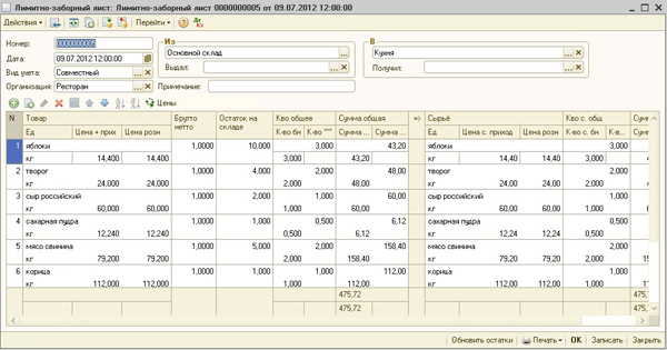 - Шляховий лист - Формування калькуляцій напівфабрикатів і готової продукції:
