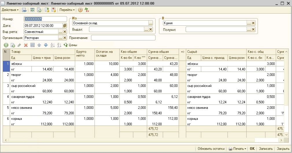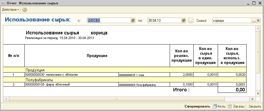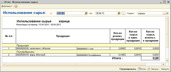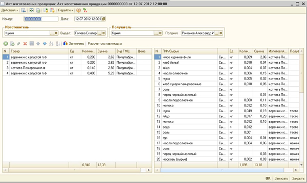 - Акт виготовлення продукції (з автоматичним розрахунком складових продукції, що виготовляється)