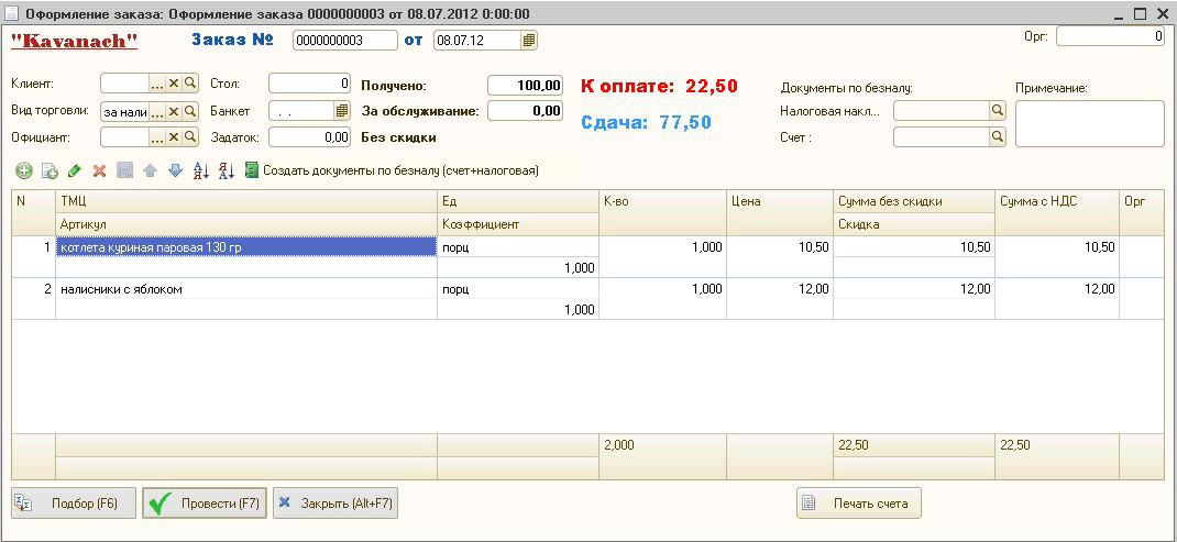 Програма дозволяє завантажувати замовлення клієнтів – дані про реалізацію товарів і страв з фронт-офісних систем.