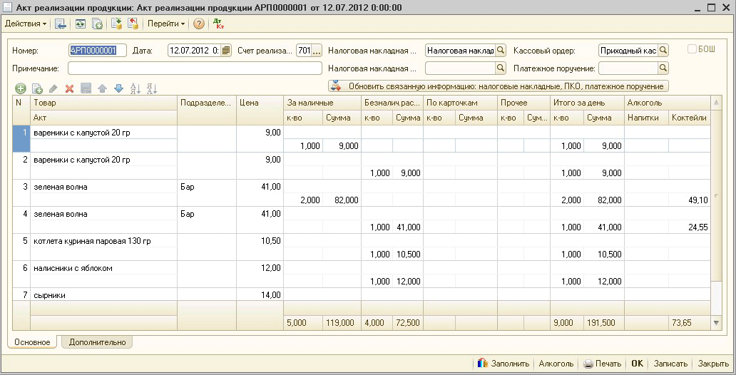 - Акт реалізації продукції (з можливістю автоматичного формування податкових накладних, ПКО і платіжних доручень)